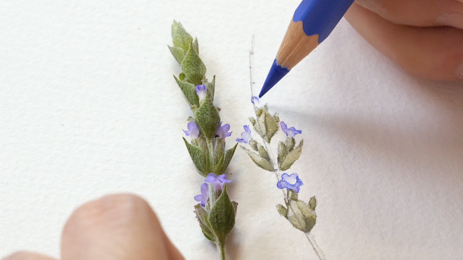 - 甜薰衣草栽培種眾多,同學可依自己所選花色調整使用水性色鉛的色號。
